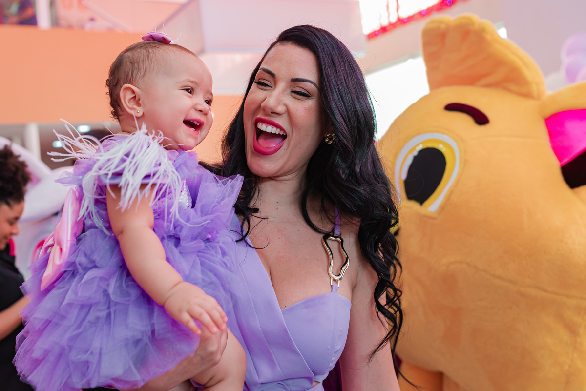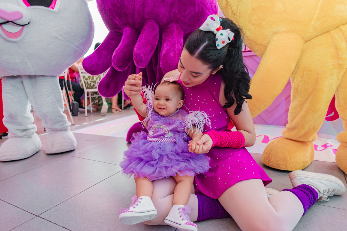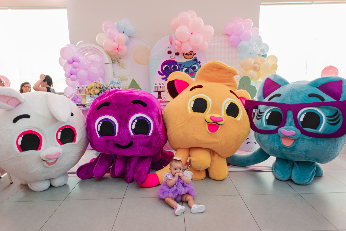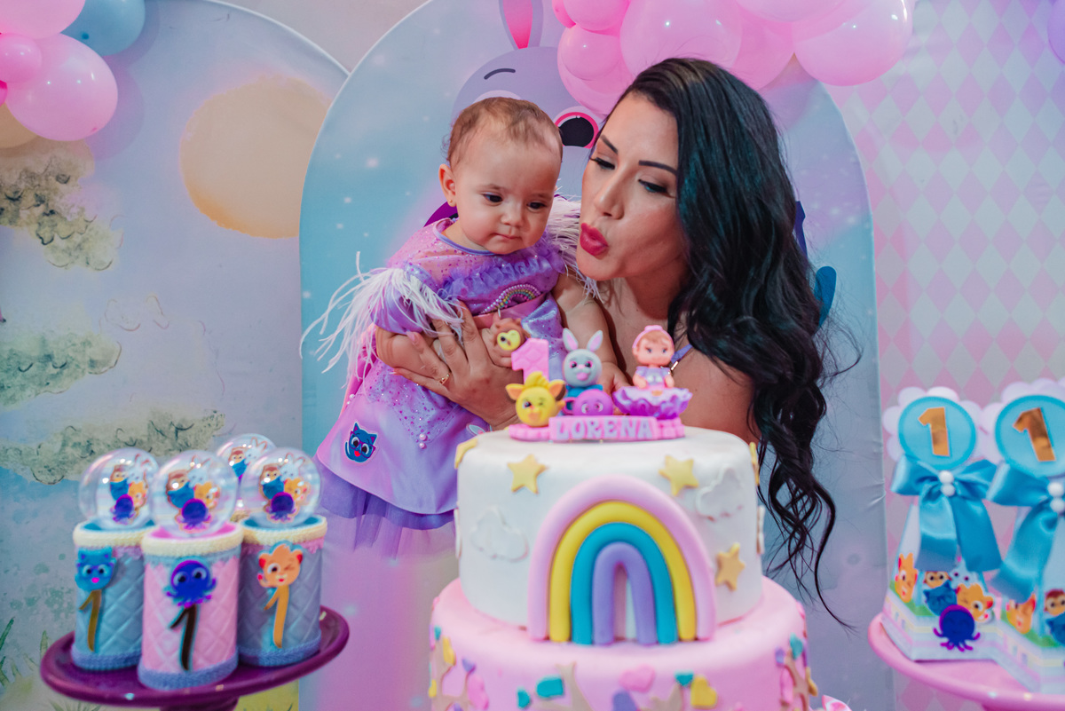 Lorena fez 1 aninho e a alegria tomou conta de todos , ela estava radiante ao lado dos bolofofos.